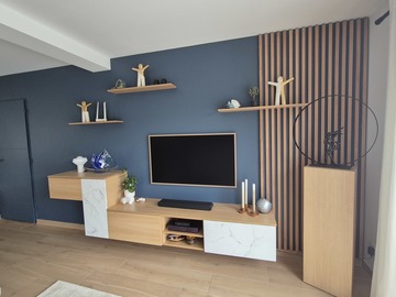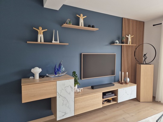 – 1 série de 3 tablettes murales bois positionnées de façon asymétrique.