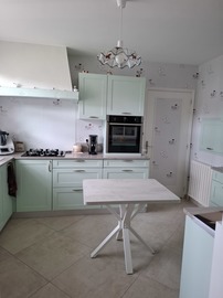 – 1 habillage fond de hotte pour intégration système aspirant laqué vert et laque couleur verte sur poutre d’habillage